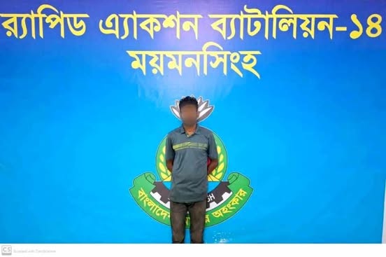 ময়মনসিংহ র্যাব-১৪, সিপিএসসি, কর্তৃক অপহরণ করতঃ ধর্ষণ মামলার এজাহার নামীয় প্রধান আসামি গ্রেফতার